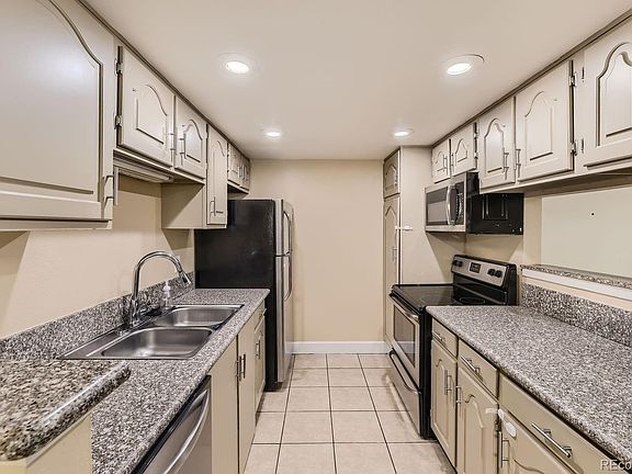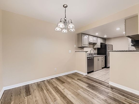 Newer flooring and newer paint throughout. Kitchen cabinets have been updated, stainless appliances and new microwave. This 3-bedroom ground-floor, end-unit condo offers spacious living in a convenient location. Boasting three bedrooms and two bathrooms, the unit provides easy access on the main level with no steps. The primary suite features two closets and a private bathroom. Enjoy the outdoors on the large, covered patio. Ideally located near parks, shopping, dining, and entertainment, this condo offers easy access to I-225, Light Rail, I-70, and E470. Two deeded parking spaces for convenient parking. Community amenities include a pool, clubhouse, basketball court. Potential rental income $1900-2000 per month.