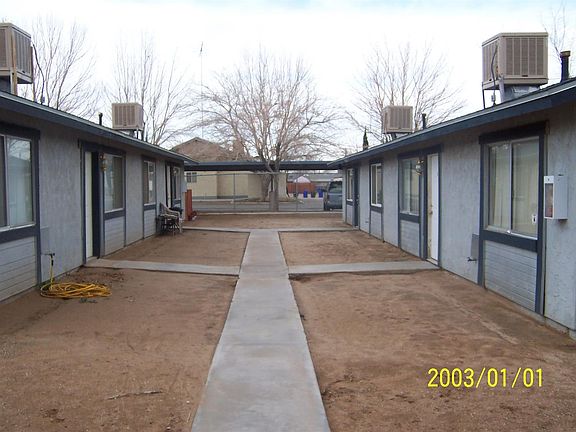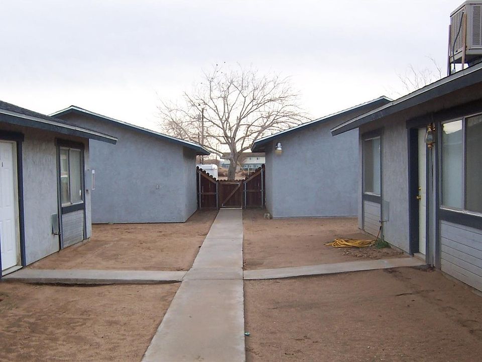Single story duplex with detached single car garage, carpet & tile flooring, stove, wall heater, evaporative cooler, basic satellite tv service paid, sky lght in kitchen, fenced side yard, No Cats, Small Indoor Dog Okay