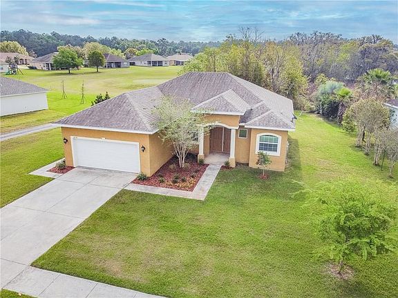 Welcome to the Trails of Rivard, a sought after golfing community centrally located to Brooksville, Spring Hill, and the Expressway leading straight to all that Tampa has to offer. The Christina Model featuring 3 bedroom, 2 bath, oversized two car garage with an abundance of natura light. This beautiful home is perfectly situated on a large corner lot that has both a golf course and pond view! Home boasts appointment including a gourmet eat in kitchen w/granite countertops and breakfast bar, crowned, cherry cabinetry and recess lighting , vast master bedroom w/ plant shelving, new carpet and large walk in closet, master bath w/granite countertops, cherry cabinetry, tiled garden tub and separate stand up shower, formal dining room with archways and hardwood laminate flooring, immense family room with laminate flooring and double sliders leading to the oversized lanai and wonderful views, guest bathroom w/granite countertops, cherry cabinetry and custom lighting and much more. Trails of Rivard is located off of US 41 for easy access to the Suncoast Parkway and Tampa. Call us today for a private viewing as this home will not last long.