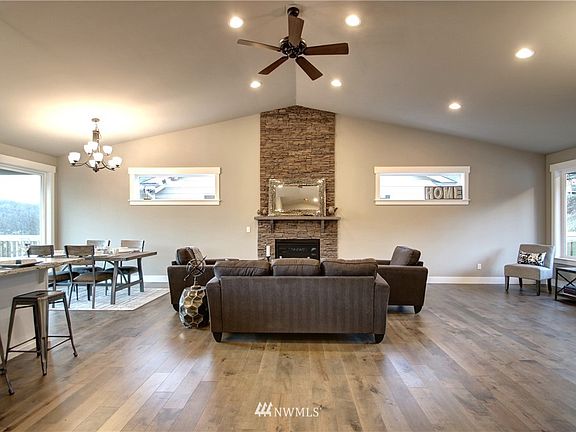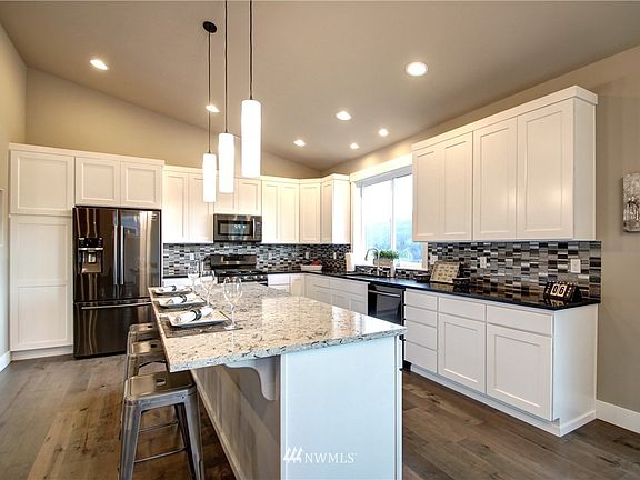 Spacious New Rambler w Big Lake Views. Enjoy one-level living perched above the beauty of Big Lake. This quality custom home,built by Kingsman Design and Build, features large open great room w fireplace and island kitchen. View deck w BBQ gas bib. Sumptuous master suite with 5 piece bath incl. separate shower and soaker tub. Rich details of slab granite, engineered hardwood floors,rock fireplace surround w mantle,custom cabinets w soft-close hardware. Lg unfinished storage/shop area under home.