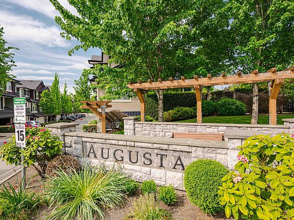 CORNER UNIT Townhome at the AUGUSTA! 4 bed, 2.5 bath. South exposure w/ a large sunny private backyard. Open main floor w/ spacious living, family + dining room & kitchen w/ granite counters, SS appliances & breakfast bar. Upper level includes principal bdrm w/ double closets & ensuite w/ double sinks & glass shower. Spacious second + third bdrms & 2nd full bath. Front loading W/D. Lower level w/ 4th bedroom (no closet). Other features include: 9ft ceilings and laminate flooring on main flr, fresh new paint throughout. 2 Parking Stalls (garage & carport) & visitor parking available. Garage with plenty of extra storage space. Pets allowed. Great location w/ schools, shopping, restaurants, parks & transit all walking distance. MOVE IN READY!