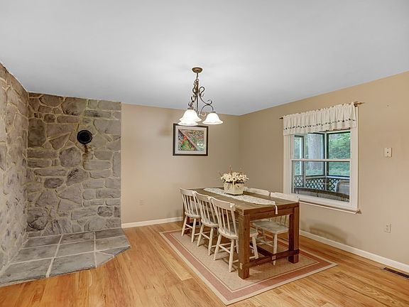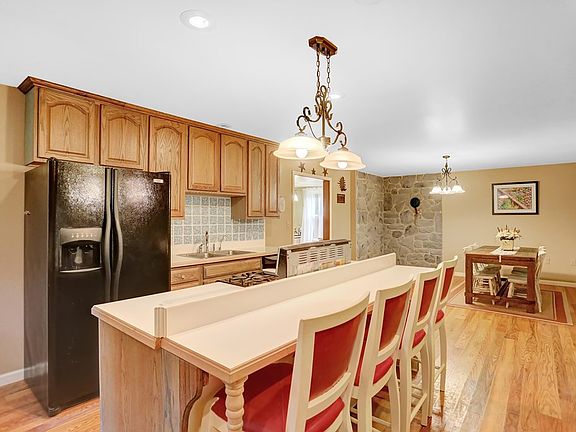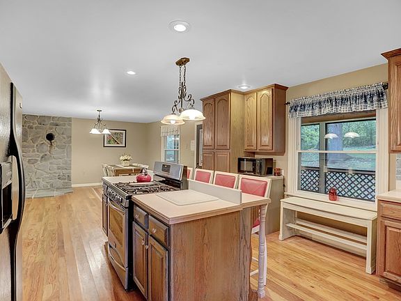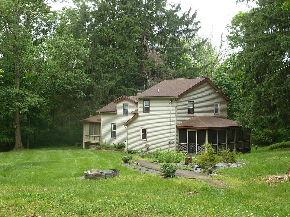 Secluded 3.75 mostly wooded acres hosts 2627 sq ft. remodeled 2-story. Lovely country eat-in kitchen w/blueish gray stained oak cabinets and spacious center island/range bar. Open floor into dining area. Replacement windows throughout. Gorgeous restored hardwood + Pine floors. Unique cathedral ceilings in master suite bedroom +in dormer areas. 2 mountain stone hearths to warm your heart and soul w/ alternative heat options. 3 full baths (previously AirBnB). Tiled 4 season/heated 19'x12' porch with screened, sliding windows. Train enthusiasts need to check out this property that borders Norfolk tracks on North edge of woods. Under 5 miles access to Thompsontown Rt.22/322 exit. Don't miss this opportunity!