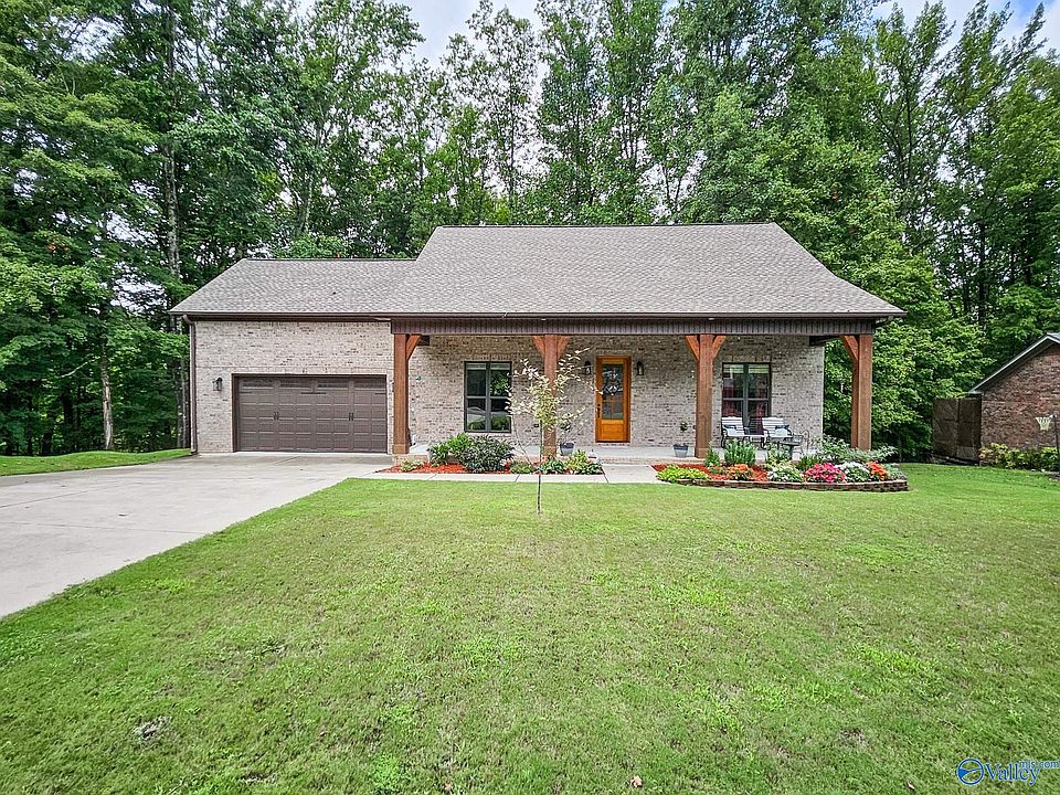 Very nice 3BD/2BA (with a bonus room), full brick home in Elkmont Rural Village. This home features wood floors throughout the main level, a stone fireplace, granite countertops, stainless appliances, and tall ceilings. The master suite is isolated on the main level. A beautiful staircase leads up to the 2nd story with a loft overlooking the living area. 2 bedrooms and a large bonus can be found on the 2nd level. The landscaping of this home has been very well maintained. The front porch features large columns, a wide porch, and a well-manicured yard and flowerbed. The covered back deck overlooks the fenced in backyard and the mature trees on the back of the lot.