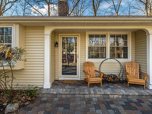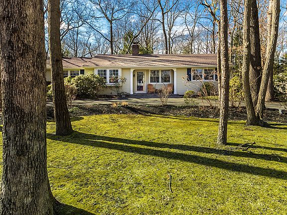 Adorable ranch home in the Lakes! Paved circular driveway with decorative edging leads to a Paver walkway and covered front porch. Large living room with hardwood flooring and wood beamed ceiling, brick wood burning fireplace. Family room with fireplace open to kitchen. Extra large kitchen with ceramic flooring, plenty of oak cabinetry with working desk area, wine rack, decorative glass front cabinets, breakfast bar with ceramic tile top, recessed lighting, corner sink. Dining area off of kitchen with door to backyard. Hardwood flooring throughout, wood beamed ceilings, painted walls. Custom built in cabinetry throughout home. 2 full baths. Central air conditioning. Newer vinyl replacement windows. Vinyl sided exterior. Backyard has a Paver patio and Vinyl privacy fencing. Garage. Laundry closet includes washer and dryer. Nice location across the street from Lake Siquitise. One year buyer home warranty included. Enjoy all that Medford Lakes offers - swimming, fishing, boating, year round activities.