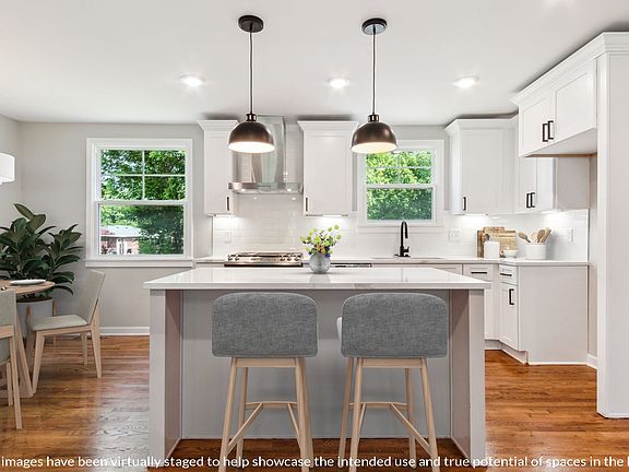 Step into this delightful, fully rejuvenated three-bedroom, two-bathroom residence nestled in the heart of Nashville. As you cross the threshold, you'll find yourself in the inviting fusion of the living room and kitchen. The kitchen is a masterpiece of design, boasting gleaming stainless steel appliances, lustrous quartz countertops, bespoke cabinetry that adds an extra touch of elegance, and a generous eat-in island, offering ample space for additional seating. The living room exudes warmth and charm, anchored by a charming brick fireplace that beckons you to unwind and relax. The primary bedroom is a sanctuary of tranquility, complete with an en-suite bathroom that features a beautifully tiled glass shower and a meticulously updated vanity sink. Not to be overlooked, this residence also includes a convenient utility/laundry room, ensuring that every aspect of your daily life is seamlessly accommodated.