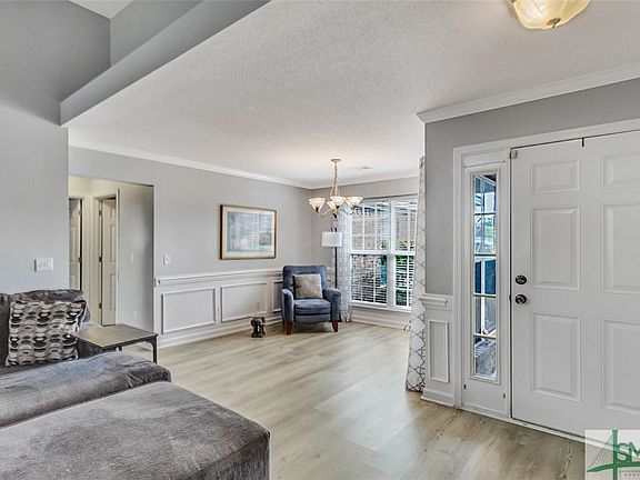 Welcome home to this charming 4 bedroom, 2 bath home in Hampton Place! As you enter the living room, you'll be awed by the vaulted ceilings and wood burning fireplace. Natural light pours in from all directions for a bright and airy feel. Enjoy new luxury vinyl plank flooring throughout main living areas. The kitchen features black appliances, newly painted cabinetry and a breakfast area with plenty of space for family meals. Relax in your private primary suite featuring an ensuite bath with double vanities, soaking tub and separate shower. Enjoy the outdoors on the patio which overlooks the backyard with walking path, storage shed & privacy fence. Best of all, this home is just minutes from Gulfstream, I-95/I-16 Airport, JCB, GA Ports and Poolers restaurants, shopping & entertainment! Don't miss out - schedule your showing today!