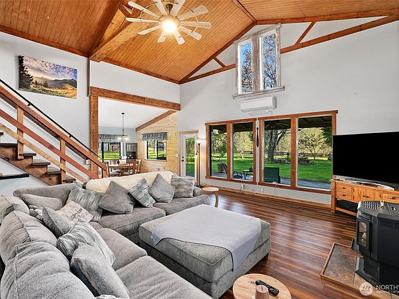Rare find! All the character you have been looking for in this Barndominium on 3 acres. Private gated entry! Suite on main floor with own bath. Recently Updated Galley style kitchen with butcher block counters and White cabinets. Great room with two-story vaulted ceilings with open beams awesome ceiling fan to move the heat from the pellet stove. Plank vinyl flooring! Loft bedroom with half bath. Covered back patio. 24 X 24 Detached two car garage/shop with 14 X 24 lean to for added storage. Room to roam and Garden on this rolling 3 acre property! Check it out before it's Gone!