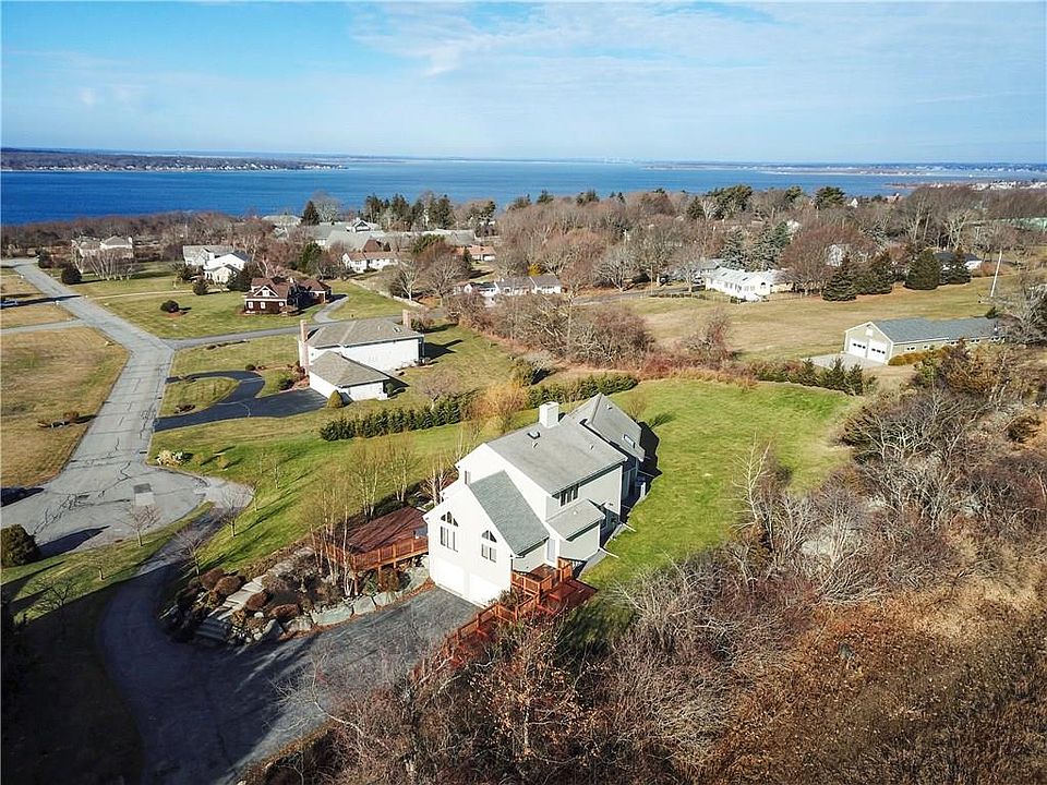 Welcome to a Magnificent Contemporary Home that features some of Aquidneck Island's best west-facing views of Prudence Island and the East Passage of the Narragansett Bay. This home is conveniently located in "Kings Grant," one of Portsmouth's preferred neighborhoods only 15 minutes from Downtown Newport and 30 minutes from Providence. An open floor plan and multiple decks take advantage of these magnificent views. There is a spacious 1st floor master bedroom suite and a beautiful new eat-in-kitchen that features granite counter tops, stainless appliances, a center island with seating for six, and multiple sliding glass doors to access the main deck. Three additional bedrooms and a bath are upstairs on the 2nd level. Enjoy NEW updates that include an irrigation system, well pump, sparkling refinished hardwood floors, and a freshly painted interior, new boiler, new oil tanks, new hot water heater and more are also a part of these updates. The central air conditioning system has 4 zones for your summer comfort. Call today for your appointment to view this rare offering!