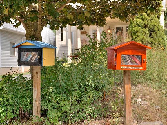 Front gardensLittle free librariesStorybook front porchStylishly updated powder roomOversized front windowWarm wood tonesLoads of cabinets