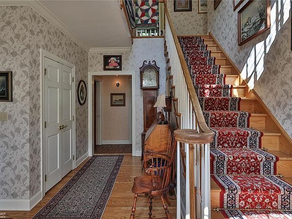 Entering the handsome paver driveway, you immediately feel the pride in ownership of this beautiful 3 story home situated on 24 Ac. The outside boasts a smoke house-style shed, herb garden, pergola w/copper roof, patio w/spa, copper down spouts & gutters & a cedar shingle roof. There is also a quaint horse barn with three stalls, a heated tack room and corral. Sobers Run Creek flows through the 8 Ac of woodland. The first floor, w/stunning open stairway, has a formal LR with FP, formal DR with built-in corner cabinetry, FR with FP, bright sunroom, custom kitchen w/twin ovens, an island w/range, another range top, & a comfortable office. You will appreciate the American chestnut and oak floors. The 2nd floor has the main bedroom w/en suite full bath, soaking tub & spacious dressing area. There are 2 add'l BR's & a full bath on this floor. The 3rd floor has 1 BR, full bath & large sitting area. An ideal man cave or guest suite. All this just minutes from Rt 33 & Jacobsburg State Park.