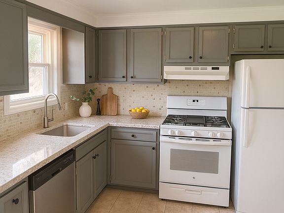 Fully Equipped Kitchen with range/oven, refrigerator, and dishwasher ready for quick meals or gourmet nights in.