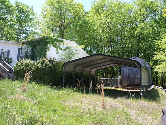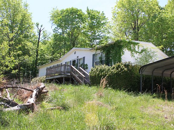 Would make a great starter home! Ranch style manufactured home on permanent foundation setting on 5.51 acres+/- with no restrictions. Home offers 2 bedrooms 2 full baths, spacious kitchen with ample cabinetry and counter space, appliances included. Large living room with fireplace, sliding doors leading out to covered back deck, master bedroom with full bath and walk-in closet. Carport awning, storage building.