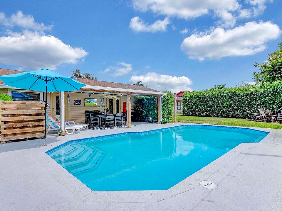 Discover the perfect blend of luxury and comfort at 182 Bilbao Street in beautiful Royal Palm Beach. This fully remodeled waterfront home offers 3 spacious bedrooms, 2 full bathrooms, and 1 half bathroom, designed with modern living in mind.Step inside to find an inviting split floor plan adorned with stunning ship lap walls and all-new tile flooring. The upgraded bathrooms feature designer finishes, ensuring a touch of elegance in every corner. Enjoy the warmth of recessed lighting and the absence of popcorn ceilings, replaced with a sleek knockdown finish for a contemporary feel. The heart of this home is the oversized backyard, perfect for entertaining or relaxing by the fire pit. Dive into the resurfaced and remodeled pool, or take advantage of the private dock for your boating, kayaking, canoeing, and fishing adventures. With no HOA restrictions, you can enjoy the freedom to park your commercial vehicles, trucks, RVs, and boats right at home.