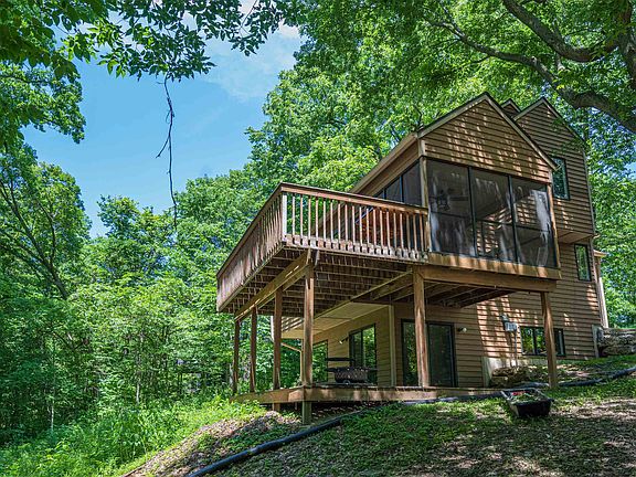 Beautifully updated wooded retreat with contemporary flair sited on .88-acre lot tucked into the trees with privacy galore and upgrades throughout. Main floor features stunning kitchen with quartz counters, gorgeous cabinetry, huge center island with seating, and stainless steel appliances and range hood, open and airy living room with new electric fireplace (2022) with wood clad accent wall, open and airy dining area, vaulted ceiling with skylights and access to generous screened porch and expansive rear deck, and spacious master bedroom with adjoining bath offering upgraded vanity, whirlpool with tile accent surround, and separate shower. Upper-level houses loft overlook to living area, two sizeable guest bedrooms, and two nicely appointed and updated full baths. Full walk-out lower level has sweeping family room great for recreation or entertaining with access to rear lower deck, sitting nook near base of stairs, laundry/utility room, and another comfortable bedroom with full bathroom. Large, detached storage shed (built in 2020) offers a great place for extra storage, lawn equipment, toys, etc. Furnace and A/C units both replaced in 2022. All carpet replaced (2022). Radon mitigation system in place. Location offers convenient access to all the amenities of The Galena Territory, including Lake Galena and Owners' Club with indoor pool, outdoor pool, fitness facility, multi-purpose gym, and outdoor tennis courts, and sits just down the road from Eagle Ridge's "The General" Golf Course and recently renovated Highlands Restaurant and Lounge. Truly a must see!