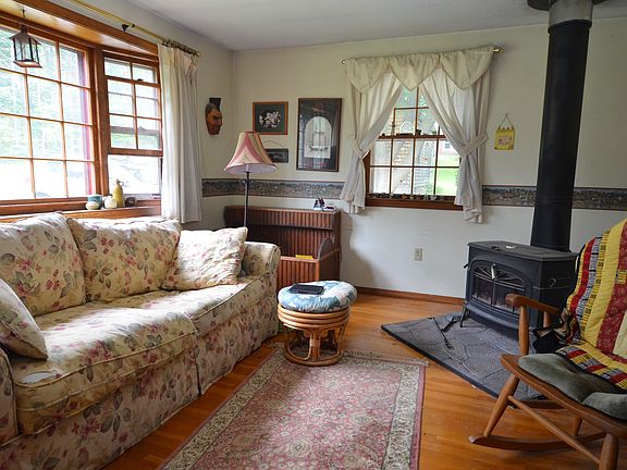 Features include hardwood floors, stainless steel appliances, wood stove, sun room with cathedral ceiling, deck, attached garage and a lower level garage leading into the basement. Huge backyard and lots of perennials. Town water/sewer. Don't miss this one!