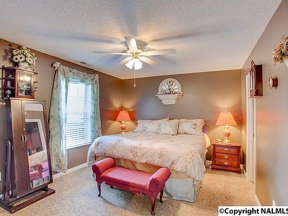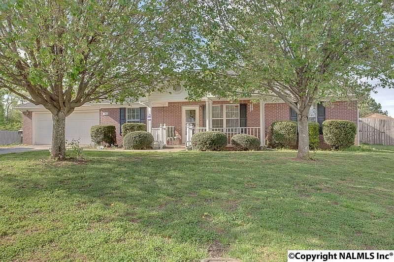 Full Brick Ranch home on Cul-de-sac. Amazing back yard with privacy fence. New roof, carpet in 2011. Conveniently located 10 minutes from downtown Huntsville. Enjoy country setting just minutes from the city. Above ground pool with sun deck, detached building with roll up door. Extended patio to enjoy the outdoors. Galley kitchen with breakfast room brings in lots of natural light.