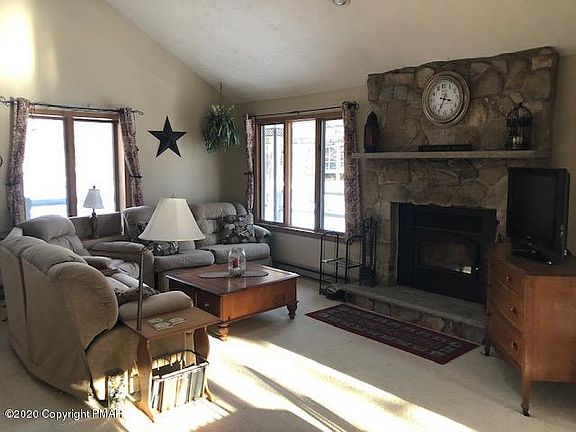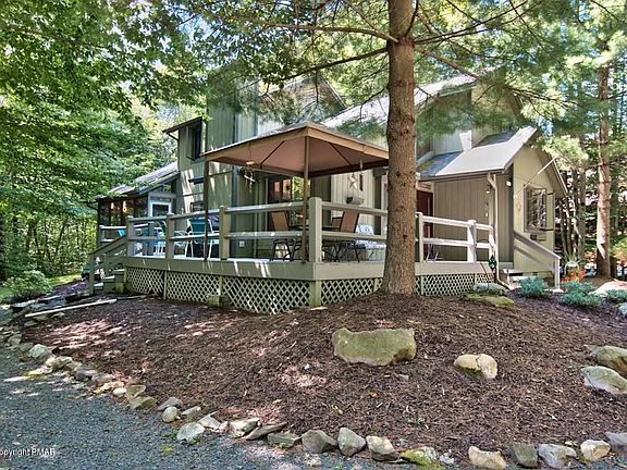 Well maintained 3 bedroom, 2 bath, wrap around deck and screened porch in Timber Trails. Great layout with vaulted ceilings in common area. Additional loft and bonus room in the back perfect for a quiet den, office, or playroom. Walk in attic area and lots of storage. Recent updates include the installation of a Hybrid Air-tight wood burning Fireplace insert and chimney ($15,000), a new microwave (2019), new kitchen sink and faucet (2017) and a new vanity mirror and toilet (2017). Directly behind the home is a green belt area and a well-defined trail that is part of the ''Timbered Trail '' loop that takes you to the North Beach on Lake Naomi. House is being sold Mostly Furnished.