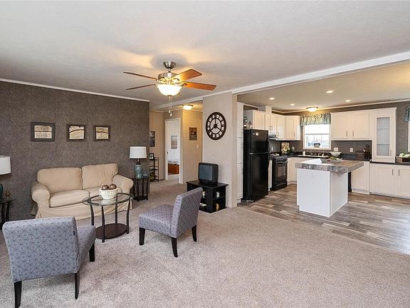 Stylish new home in quiet park w/ panoramic views. Spacious, open floor plan with central air. Eat-in kitchen with island features all energy star electric appliances (microwave, dishwasher, side by side refrigerator w/icemaker).  Kitchen is open to dining area and living room.  Home includes 3 bedrooms, 2 baths with en-suite primary bedroom with large closet.  Convenient main-floor mudroom and laundry room.  Rear deck (12x12), carport (12x25), front deck (6x6). Minutes to shopping, services, and downtown Ithaca.