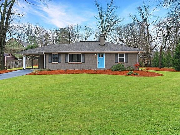 Move-in ready renovated mid-century ranch on beautiful level lot (0.44 acre) with huge backyard, easily walkable to downtown Alpharetta and under $500k! Take advantage of everything Alpharetta has to offer while still enjoying a single family home with a beautiful yard. Full renovation in 2015, including roof and gutters, windows, kitchen cabinets, granite counters, SS appliances (fridge stays!), glistening hardwood floors throughout, new doors, trim, lighting, electrical, plumbing - too much to list! Already connected to sewer, so bring your builder and add more bedrooms if you need more room. Quiet street in highly desirable neighborhood surrounded by multiple newly built $1-2M homes with more on the way. Take the guesswork out of moving "in town" and make this beautiful home your next move.