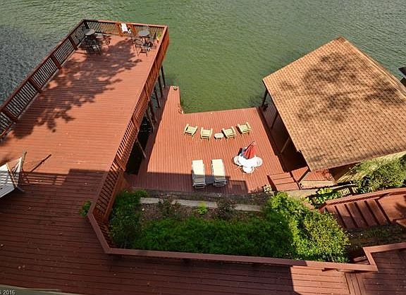 Incredible Mountain Views. Updated LAKEFRONT HOME on Main Channel. Easy Lake Access. 2 boathouses, Expanded Decks creates ideal Swimming, Floating and Lakeside Entertaining Areas. Upscale Kitchen and Bath. Open Plan. Charm and Character. Wood floors, Bead Board Ceiling, 2 STONE FIREPLACES. Private Master. Main Level Family Room and Lower Level Den open to Covered Decks. Secret Garden. Mature Lush Landscaping. Substantial Vacation Rental History available. Floored Storage Area under house.