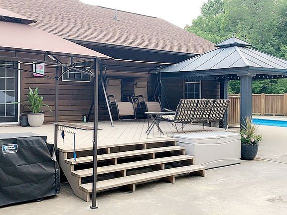 It has 4 bed rooms. A large master with master bath. And 3 other bed rooms. A large room up stairs with 2 storage rooms and a half bath. New appliances throughout. New water heater. New heat and air upstairs. 2 car attached garage and 1 car detached garage. Large front porch, mostly covered. Rear porch. Large L shaped pool with patio all the way around, pool heater and automatic vacuum. Pool house with storage and half bath and room for patio table. 2 storage buildings in the back yard. 2533 square feet. We also own the rental property beside of the house, it is also for sale.