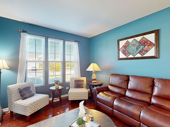This absolutely stunning, newer home in Prescott Mill features a beautiful brick front, 4 bedrooms, den on main floor, 2.1 bath, full unfinished basement and a spacious 3-car garage. Step inside to an inviting two-story foyer adorned with upgraded hardwood flooring that seamlessly flows into the Living Room, Formal Dining Room, Kitchen, and Family Room. The Family Room is a cozy haven, showcasing a gas-log fireplace with a white mantel and quartz surround, perfect for gatherings. The first-floor office offers an ideal workspace, while the updated kitchen impresses with white cabinetry, stainless steel appliances, gleaming quartz counters, a Butler Pantry, and LG dishwasher. Painted throughout in soothing neutral hues, the home boasts elegant lighting fixtures that enhance its modern charm. Upstairs, the expansive primary suite features vaulted ceilings, dual walk-in closets, and a luxurious en-suite bathroom with granite counters, 2 square sinks, and Birch cabinets. The interior lot offers a fenced backyard, a lovely wood deck, and a stamped concrete patio, making it perfect for family gatherings and outdoor enjoyment. Located near a serene pond, park, and walking paths, this home also provides easy access to RT 30 and 34, along with shopping and dining options. DON'T MISS OUT ON THIS FABULOUS OPPORTUNITY IN SOUTHBURY ELEMENTARY SCHOOL, MURPHY JUNIOR HIGH SCHOOL, AND OSWEGO EAST SCHOOL DISTRICT!! Minutes away from AURORA, factory outlet mall, everything Naperville rt-59 and 95th st corridor, shopping, AMC theatre, restaurant, Amazon Fresh, Costco, grocery and highways !! Ample of storage and MOVE-IN-READY !! PICTURES ARE FROM PRIOR TO TENANT MOVING IN LAST YEAR. PREVIEW BEFORE IT'S GONE.