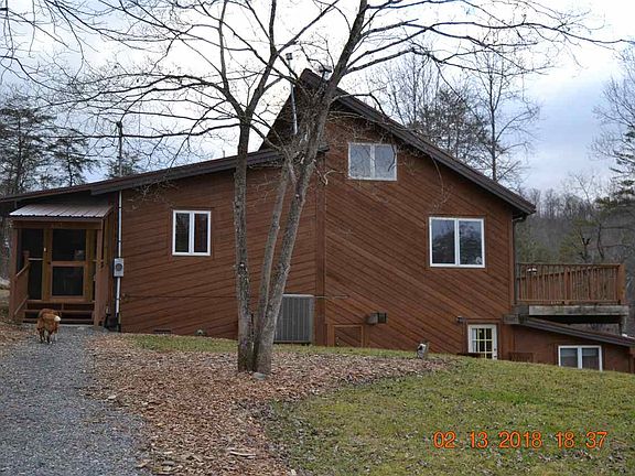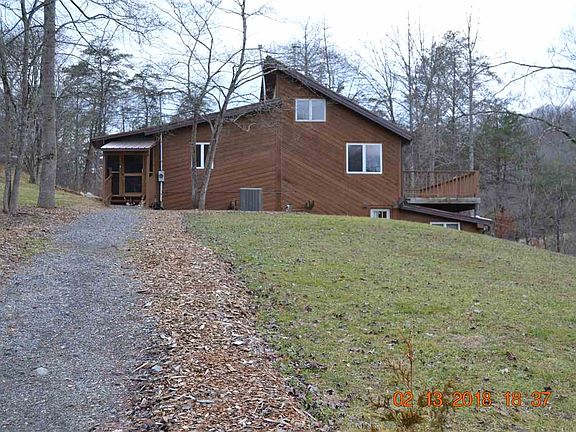 3 Bedroom cabin in the East Tennessee Country for sale. Cute, unique style cabin in the woods with main level living and guest rooms downstairs. Central heat and air plus wood burning stove as extra heat source. Beautiful, Asian, cherry hardwood flooring in living room. Tile in kitchen and entry way. Large, 2 car detached garage with tool room, wood shed, and loft plus concrete pad to park RV. Nice, garden spot and large yard for the children to play or watch the deer play.