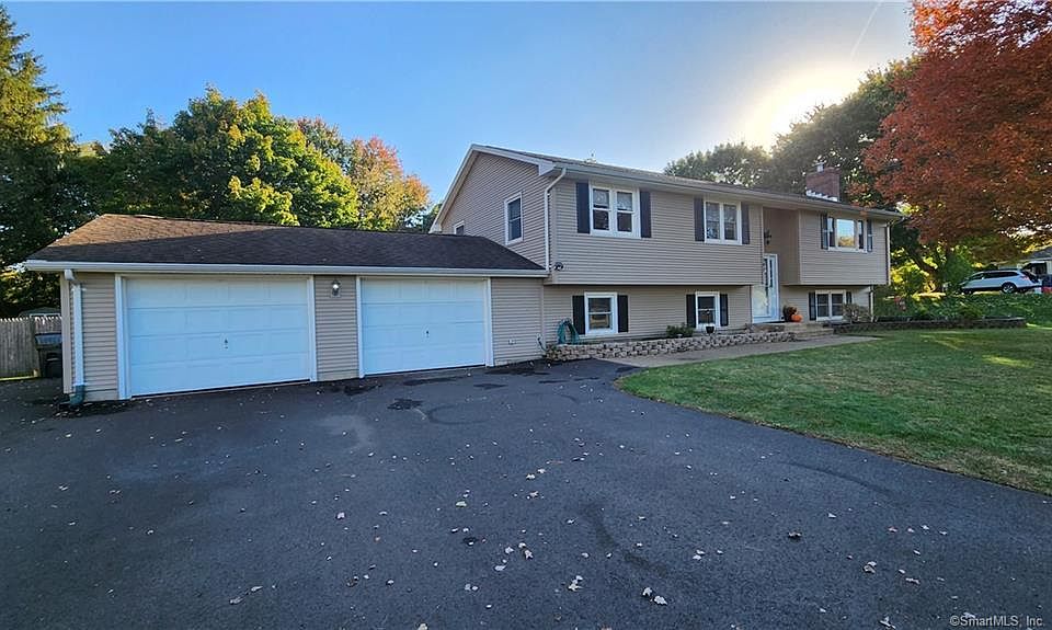 Move-in ready, oversized Raised Ranch with 3 bedrooms and 2 full baths. Kitchen comes with island and stainless appliances. Central Air. Enclosed sun-porch off dining room leading out to a Trex deck. Primary bedroom has newly remodeled bathroom (2022). Finished basement with 2 large rooms and laundry. Oversized 2 car garage and new driveway (2021). Sits on .69 acres of level land! This is a must see! Washer, dryer, and extra refrigerator to remain. Home comes with a generator hookup. Leased propane tank for kitchen stove.