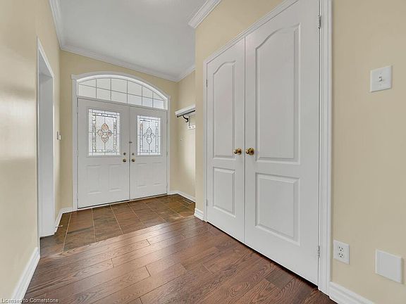 Welcome to 182 Doon Mills Drive, nestled in the highly sought-after Doon Village area of Kitchener. This meticulously designed 4+2 bedroom, 5-bathrooms home stands on a beautifully landscaped lot with lush greenery & charming exterior. The spacious driveway accommodates up to 4 cars, in addition to the 2-car garage, ensuring plenty of parking. Step through the private porch & elegant double entrance doors into a welcoming foyer. The main level features a bright & airy den, perfect for a home office. The main floor also offers a separate living room & family room. The family room is boasting a warm gas fireplace & wall of windows that fill the space with natural light. The upgraded kitchen is sure to impress, featuring quartz countertops, a stylish tiled backsplash, abundant cabinetry & A large center island, while the convenient pantry provides additional storage. Throughout the main level, hardwood flooring & 9ft ceilings create a sense of elegance. A powder room & laundry room are also placed on this floor for added convenience. Upstairs, you’ll discover 4 generously sized bedrooms, including 2 luxurious master suites. Most of the bedrooms are equipped with walk-in closets. A charming balcony accessed from the 2nd level offers a lovely sitting area, perfect for enjoying morning coffee or relaxing in the evening. The finished basement expands the living space, featuring 2 more bedrooms, 3pc bathroom, Rec Room, so much extra storage ideal for guests or extended family. Step outside to the fenced backyard, with beautifully maintained lawn with a sprinkler system, a spacious patio & a storage shed. Whether you're hosting bbq, playing with the kids, or simply enjoying the summer weather, this backyard is an outdoor oasis. The home is also conveniently located near major highways, making commutes a breeze, easy access to amenities, parks, top-rated schools, shopping center & recreational facilities. Don't miss your opportunity to call this stunning property your own.
