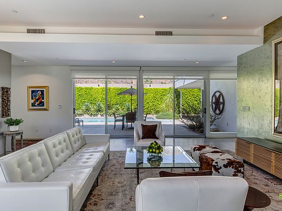 Light, bright modern oasis with tons of upgrades and spectacular mountain views !! This home features fully paid solar with Tesla battery panels ..situated in a quiet private neighborhood with lots of beautiful landscaping and garden plants surrounding ... outer courtyard has lots of room for entertaining around the sparkling pool and open cabana ...all bathrooms and kitchen have been upgraded ...walls of glass in the living room and master bedroom make this a true showpiece...close to restaurants and shopping ready for you to move in and start living the Palm Springs Lifestyle.