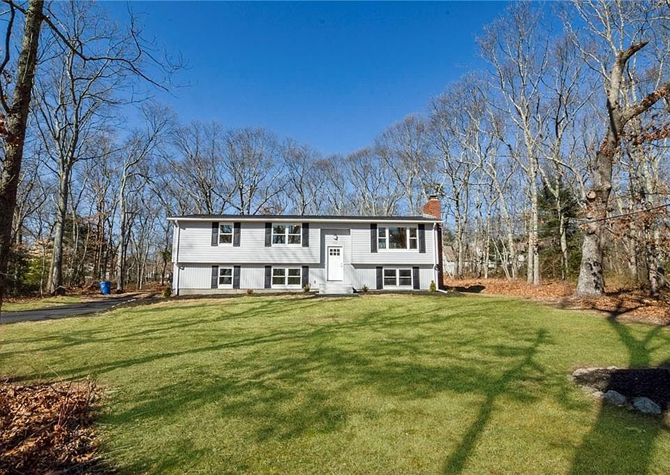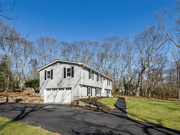 2000 sqft of bright and newly renovated living space. 3 bdrm, 3 bath raised ranch with office, bonus room, 2 fireplaces and set on a 1 acre elevated and wooded lot. New, new, new. Roof, windows, doors, flooring, mechanicals, paint inside and out, granite counters, oak floors, tile baths, appliances, new well pump and tank. Dead end road in Estelle Heights neighborhood. Association area and pond access to Hundred Acre Pond. Just minutes to URI and South County beaches.
