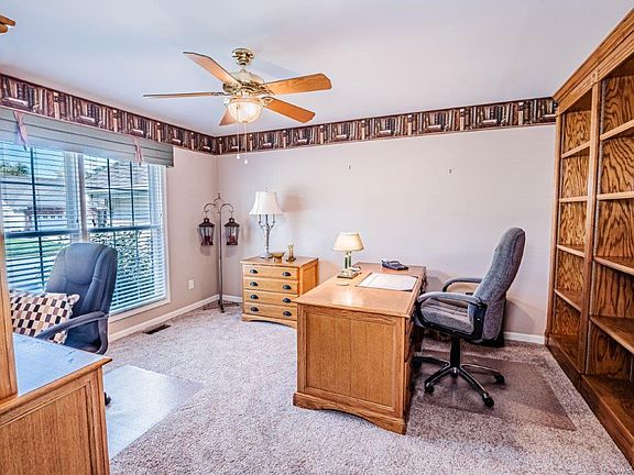 Welcome to this 3 bedroom, 3 full bath, oversized 2 car garage villa in the highly desired Whitegate Villas Community! Beautiful hardwood entry leads into a spacious great room featuring vaulted ceilings and gas fireplace! Newer carpet on main floor! The main floor master has a large walk-in closet and private bathroom! The second bedroom is spacious and is set up as an office with built in book shelves! The kitchen features 42 inch custom cabinets, granite countertops, large farm style sink, new refrigerator(8/22) that stays with the home! The sliding glass door leads to a large covered deck that is perfect for entertaining! The Laundry room offers a large pantry! Washer and dryer stay with the home! The walkout basement is finished with a large walk-in closet, spacious 3rd bedroom, full bath, and a second fireplace! There is also a large storage area complete with extra electric added and work benches for all your projects! Furnace, AC, and water heater replaced 6 years ago! Location: Ground Level