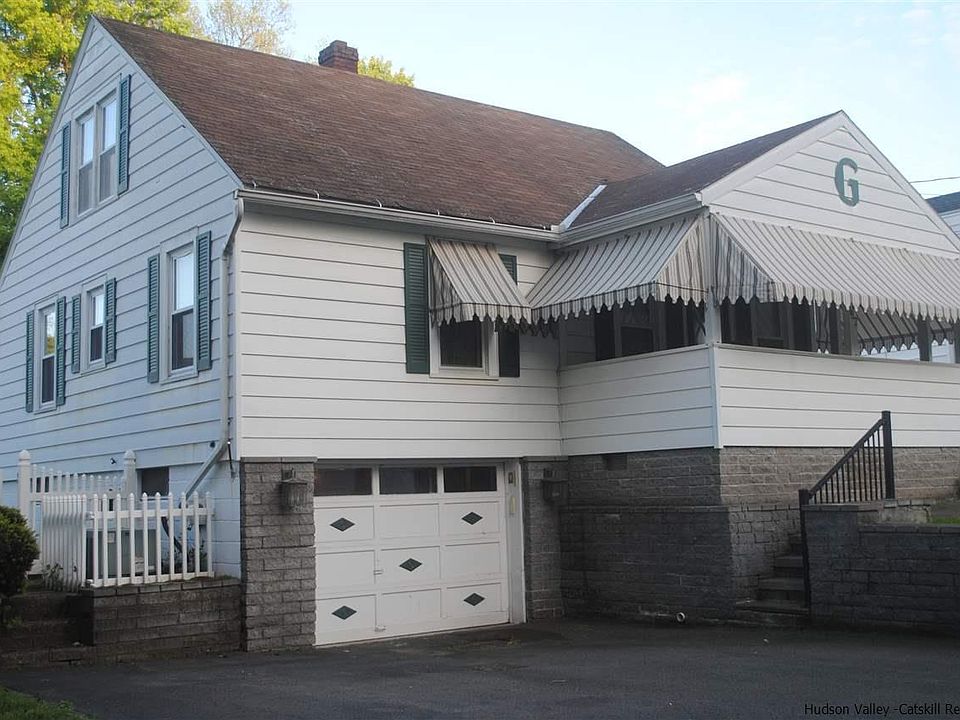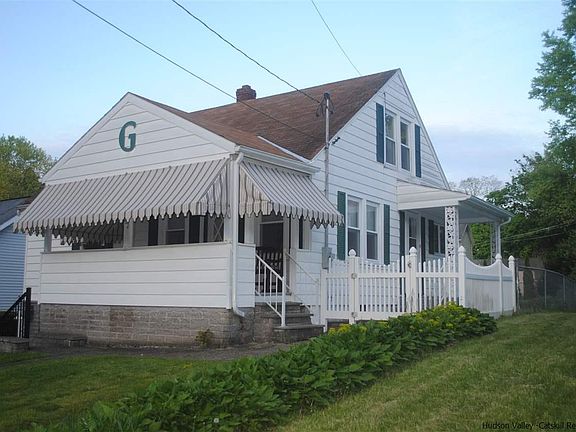 Well maintained Cape style home is close to many conveniences in uptown Kingston. Located near restaurants, walking distance to J.W Bailey & Edson schools, park, zoo, playground, shopping, bus station & NYS Thruway are all 5 minutes away. This home has 4 BR, LR, 2 baths (1st floor has bathtub no shower, 2nd floor full bath) & a large kitchen with dining area. One of the 4 BR on 1st floor is presently used as a den & this could be one floor living for convenience. Spacious kitchen is partially updated with granite counter tops & updated appliances. From kitchen side door you can conveniently walk to the backyard which leads you to a large concrete patio & a large deep fenced yard with lots of room for gardening, playing & entertaining. Large yard allows for many opportunities for expansion if needed. Some of the many qualities & improvements include, replacement windows, recessed lights, HW floors under carpet, cast iron baseboards, access to extra storage space in attic closets behind bedroom walls upstairs, Cent A/C, basement has built in storage shelves, room for a workshop area & access to extra storage under front porch, new furnace (2019) & newer hot water heater (2014). Rocking chair front porch is spacious for relaxing & has awnings to help keep house & porch cooler in the summer. Great house at a great price in a great location!!! Come take a look.