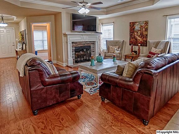 * Full brick * Open floor plan * Family room with gleaming wood floors * Trey ceiling * Crown molding * Beautifully designed Wood burning Fireplace * Tile in all wet areas* Kitchen island * Tiled backsplash * soft close cabinets* NEW Microwave * Stainless steel appliances * Refrigerator remains with home* Isolated master suite w/ trey ceiling* Master bath with double vanities and walk in closet * Large laundry room*Smooth ceilings throughout* Two car garage* Covered patio w/ ceiling fan * Privacy fenced yard* Madison City School district* Qualifies for 100% financing!