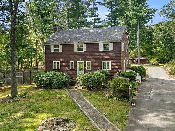 Surrounded by stately trees on a lovely 2-acre lot in scenic Boxford, this center-entrance Colonial offers privacy & many opportunities for outdoor fun & entertaining – on or off the spacious deck & in the massive backyard. 4 bedrooms, 2.5 baths & 2,000+ sf of living space allow room for everyone. A fireplace gives off cozy vibes in the front-to-back LR, & the dining room has a built-in china cabinet. The kitchen is open to an oversized eating area w/ a pot-belly wood stove. In addition to built-in window seats, large windows & wood stove, the sprawling family room has access to the deck & yard. Upstairs, hardwood flooring is in all 4 bedrooms & the primary en suite boasts a step-in shower. The main bathroom has the most charming square tub/shower combo. Unleash your imagination in the full basement: more living-play space, office, storage, etc. New roof, deck, & water system, updated electrical & 3 bay garage are just some of the hallmarks of this great home! Showings begin Saturday.