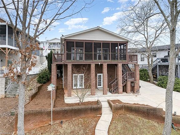 Wow! This stunning one owner all-brick modular waterfront home offers breathtaking views and direct access to the community waterfront boardwalk. Featuring three bedrooms and two baths, the main-level primary suite includes a spacious walk-in closet and ensuite bath. The open-concept kitchen, dining, and living areas provide spectacular water views, while double French doors lead to a screened porch perfect for relaxing. The lower level boasts two additional bedrooms (no windows), a full bath, and a generous living space that opens to a covered patio—ideal for lakeside entertaining. Ample parking includes a long concrete driveway and upper-level parking for convenience. Fresh neutral paint and durable vinyl plank flooring enhance the main level, and the affordable price allows room for personalized upgrades. Don’t miss this opportunity to experience the beauty of lakefront living at Badin Shores Resort—schedule your showing today!