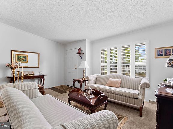 Impeccably kept spacious ranch style home on a corner lot in Buckingham Springs. Featuring the "Wayne" model this home has amazing amenities and is just a short walk to the community clubhouse with in-ground pool complete with sun shaded tables and lounge chairs on the swim deck! The home is perched atop a large front yard with note worthy landscaping as you are greeted by the nice sized front patio. Complete with well chosen plantings and lots of room for entertaining and relaxing. The front living room is spacious echoing the home's cottage-esque neutral decor with custom plantation shutters. Perfect for hosting company with generous ceiling height and great flow into the additional kitchen/living spaces. Custom outfitted light streaming windows give this home its quaint yet sizeable feel. As you move into the sun-drenched "den" large windows encircle the room giving the space a green house feel with stylish window shades and ceiling fan. The nicely appointed eat-in kitchen is bright via the central skylight and functional for daily at home meal prep as well as elegant entertaining in the dining area. Along side the kitchen is the laundry room with overhead cabinetry for a streamlined look. Hosting the backdoor and doubling as a handy mud room there is a built in bench with hooks to stow shoes, keys, coats etc. The two bedrooms sit on either end of the home each tucked away for peaceful daily living. The primary bedroom, boasts space for a king size bed and plenty of furniture. Complete with ceiling fan, walk-in closet, and spacious bath with walk-in shower and brightly lit vanity. The second bedroom also with ceiling fan has its own three piece bath and generous closet fitting a double bed and complete bedroom furniture set. Both rooms have newer carpets and custom plantation shutters so no need for additional window furnishing! The backdoor leads to another concrete patio space with garden shed perfect for all of your additional storage. The home has designated two-car parking with paved path just steps from your back door. Featuring a heat pump with electric backup and central air conditioning. Upgrades include: New Stainless Kitchen Appliances 2018, Roof replaced 2019, Washer 2024, HVAC Nov 2015, and Hot Water Heater Jan 2017. Surrounded by green space the vibrant association boasts daily events with a noteable walking community keeping you on your toes. The community mailboxes are also just a few steps from this home. Located in historical and bucolic Bucks County. Buckingham Springs is a 15 minute drive to chic downtown New Hope, a 10 minute drive to Peddlers Village, plus two lovely wine vineyards and Golf Courses minutes away. Easy access to I95 & 76 a 30 minute drive!