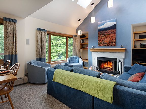 WOW ! This stunning Highridge condominium has it all! Birch kitchen cabinets with soapstone counters and Hubbardton Forge lighting throughout! Tastefully furnished and appointed, including custom window treatments and two Apple TVs. Living area with cathedral ceilings, skylights and a wood-burning fireplace. A private entrance leads to this 2-level, 2-Bedroom, plus loft, 2.5 bath condo overlooking, and just steps away from the Sports Complex. 2-zone propane heat with Ecobee thermostats. Rental flexibility, with one bedroom being a "motel-lockout" with whirlpool tub and a separate entrance. Two Covered decks, two attic lock-up storage areas, new hot water heater and dishwasher. Two tennis courts and outdoor grills for summer enjoyment. 2022 net rental income for 39 rental days $15,000.