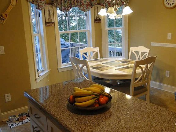 Charming Ranch Style home in Hunters Point Subdivision featuring vaulted ceilings and gas log fireplace in the living room, large eat in kitchen, double vanity in master bath, and bay window in the master bedroom. Spacious 2 car garage, large deck in the back perfect for your next cookout.