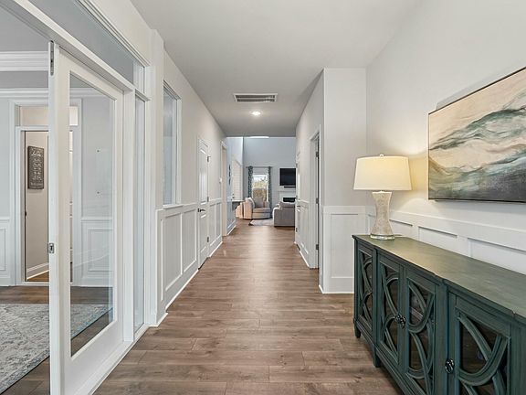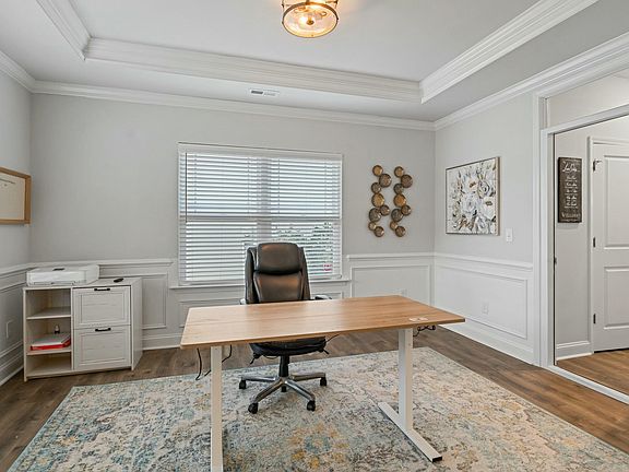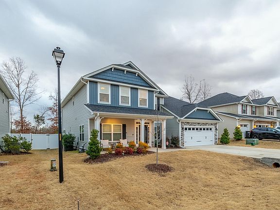 Discover this stunning 5-bedroom, 3.5-bath home, built in 2021, offering modern design and eco-friendly living. The two-story living room fills the space with natural light, while the open-concept kitchen shines with sleek finishes and a spacious island. Work from home in the private office, then unwind on the covered front porch or back patio. The first floor primary suite is a luxurious retreat, complemented by four additional spacious bedrooms. Solar panels provide energy efficiency and savings, blending style with sustainability. This home is the perfect mix of elegance and function. Schedule your tour today!