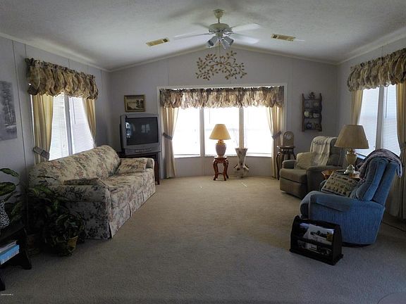 Spacious, light bright and cheery 2005 66 foot home. Large bedrooms, spacious and open Living room. Vaulted ceilings, master bath has French door entry with both separate shower and tub. Washer and dryer are inside for your convenience. Workshop area off large 3 car carport. Very private . Most furniture stays, or can be negotiable .Amenities include: Two Pools, clubhouse with many activities, Seller will give Credit for A/C HOA fee is included in taxes.