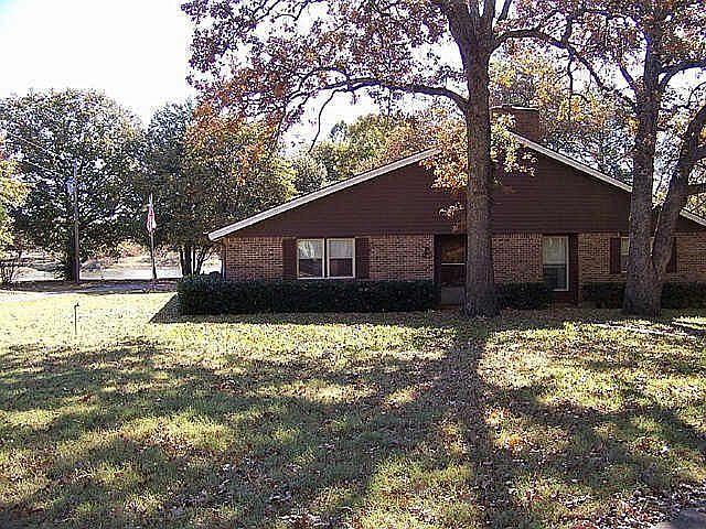 Heavenly country retreat near Lake Texoma. This brick home beauty has a shared lake, beautiful trees and pasture with loafing shed, tack room, workshop and large detached garage. The sun room would make an ideal office or play room for the kids.