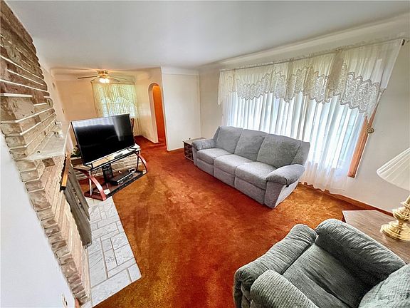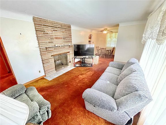 Well-maintained stucco ranch is situated on a spacious lot. Step inside this Leechburg School District home from the covered, wrap-around front porch. From the entry, step into the LR/DR w/curved plaster ceiling, plaster walls (throughout the entire home), hw floors (under w/w) & gas, stone fireplace. Living Room provides tons of natural light from the bow window. Kitchen features real wood cabinets, full appliance pkg & access to the rear yard, from the back door. One bedroom is currently used as a den. The two additional bedrooms both offer ample closet storage and a full bathroom round out this level. At bottom of steps, you'll be in the game room with a bar area and a brick, wood-burning fireplace. The game room leads directly into a large storage/workshop area, laundry and a partial bathroom. The yard is mainly level with a detached garage that is accessed from the rear alley. The seller has shared that a new main sewer line will be replaced prior to closing.