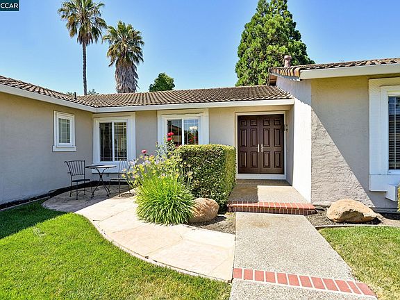 This is an EXCEPTIONAL Danville South single-story home in every way! Premium details & quality craftsmanship throughout ... do not miss it! Beautifully appointed in every way starting with the elegant formal living & dining rooms accented by a vaulted ceiling, can lighting, custom built-ins & bay window. Gourmet kitchen features granite counters, tile flooring, custom cabinetry, bar seating, GE Profile 5-burner cooktop & double ovens, GE dishwasher, Marvel wine fridge, large walk-in pantry & more! Spacious family room with fireplace + game room + nook eating area. Wonderful primary suite with remodeled bath & dual vanities + slider door to the backyard. 3 additional oversized bedrooms + remodeled guest bath. Premium millwork, crown moldings & woodblind window coverings affirm the quality of this desirable rancher. Large laundry room + extra cabinetry with outside access door and a 2-car attached garage. Enhanced landscaping to include exposed aggregate & brick walkways, extensive paver patio, large grass & garden areas, sideyard access & more! Topped off by scenic hill views & relaxing spa! And NO HOA. Premium location close to everything - this stunning home truly has it all!