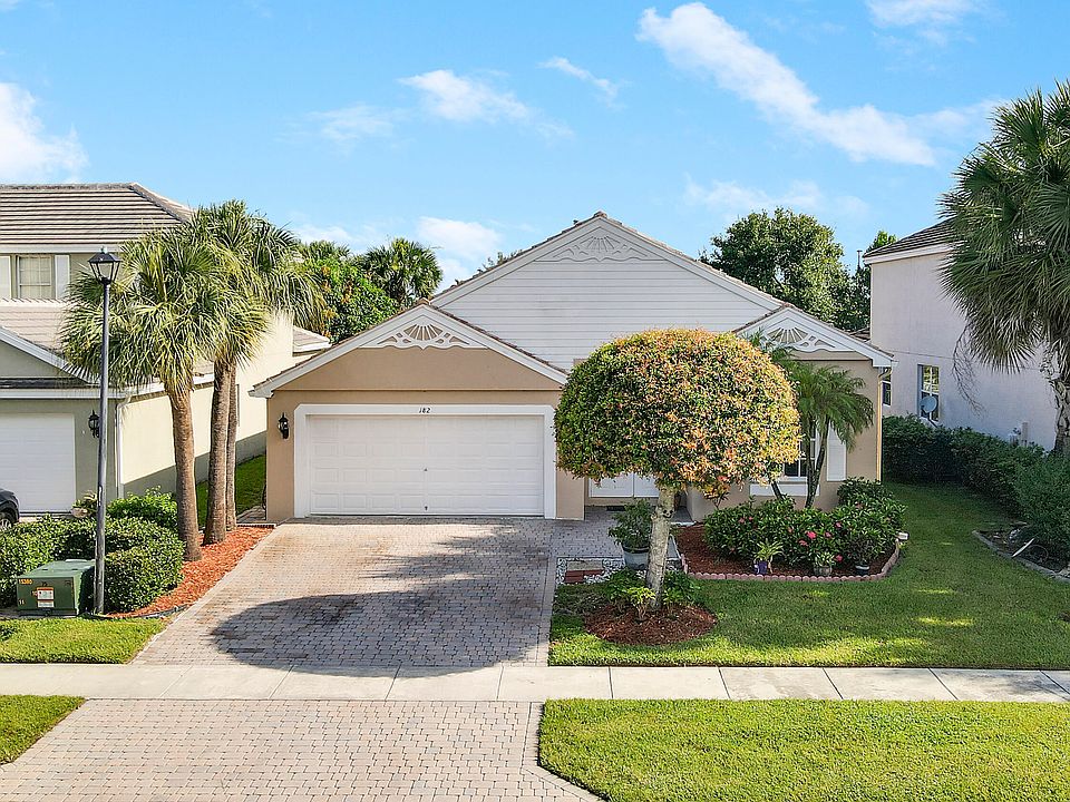 Welcome home to 182 Kensington Way located in the coveted community of Victoria Grove! This well-appointed CBS home features 4 bedrooms, 3 full bathrooms, 2,151 square feet under air, a private patio and 2-car garage. Kitchen has stainless steel appliances, 1 year old gas-stove, and large countertop with bar stool seating for 3. Bright open living air with glass sliding doors leading to the rear patio. Master suite includes granite countertops, dual sinks and two spacious walk-in closets. Stacked bedroom floor plan with 3 additional bedrooms and 2 additional full bathrooms.. Enjoy the tranquil paver patio and lush backyard which includes mango, banana, and avocado trees. 2020 gas hot water heater. Residents of Victoria Grove enjoy an abundance of amenities including a clubhouse with fitness center, a grand pool with spa/hot tub, playgrounds, picnic areas, Tennis courts, Hockey rink, Soccer field and a beautiful Gazebo overlooking the lake. Minutes from prime shopping and dining, a short drive to pristine area beaches, I-95, the Florida Turnpike, and PBI airport. This one is a must see!