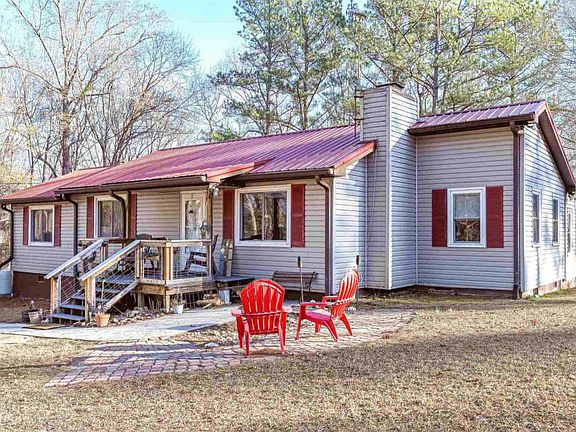 Quiet living at it's best!! Open floorplan....great room, kitchen, dining room. Updated kitchen with appliances and island. Three bedrooms, two baths, large utility room. Large and small pantries. Master bedroom has lighted wardrobes and two closets. Rocking chair front porch. 8x24 rear deck. Front porch and back deck. Large round fire pit under huge shade trees. Large deck in the yard for awesome outdoor entertaining. Beautiful fruit trees and perinnals to surprise you in the Spring!! All situated on 2.85 acres!!