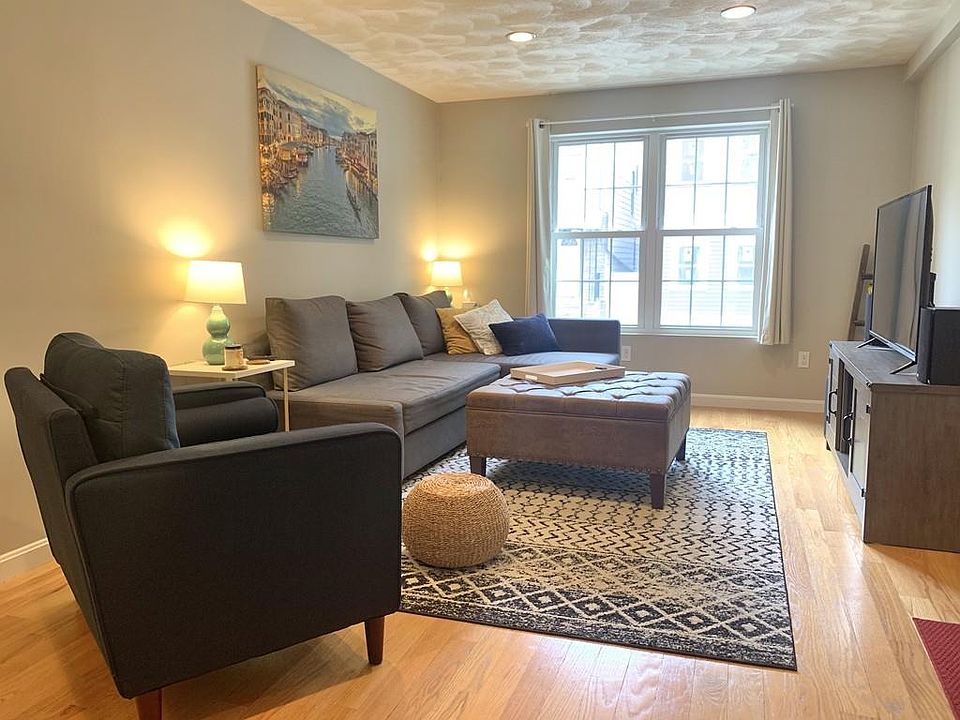 Great two bedroom apartment with hardwood flooring, central heating and central air conditioning. There is a common backyard, coin operated laundry, and extra storage space. The kitchen features granite counters, gas stove, refrigerator, and dishwasher. New microwave and pedestal sink to be installed. The apartment is approximately .5 mile (Google Maps) walking distance to the Maverick T stop and .6 mile walking distance to the Airport T stop and the East Boston Greenway. Please take a look at the virtual tour and feel free to ask for a link to the tour if needed. Easy to show with minimal notice.