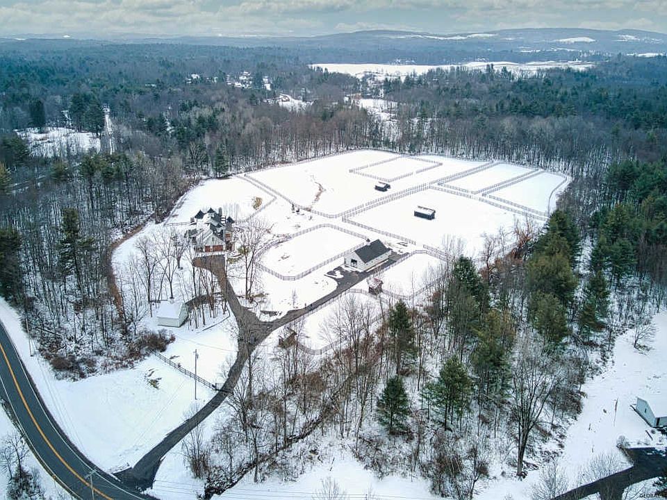 Absolutely immaculate custom home set on a 25 acre horse farm w/all the bells & whistles. Pull in to the views of fenced-in paddocks, run-in barns & jumping arena. Make your way up to the stunning 3 BR home w/ wrap-around porch which is partially screened-in overlooking the perfect summer patio. Inside you'll be greeted by HW floors & cathedral ceilings opening to the 2nd floor. The open floor plan allows the living, dining & gourmet kitchen to all flow together. Wet-bar is perfect for entertaining! 1st floor bedroom features ensuite bath. The 2nd floor features another guest suite in addition to the master: walk-in closets, large shower & clawfoot tub. Partially finished basement for home gym & rec room. 7-stall barn w/tack room, feed rooms & laundry room as well as 1 BR apartment.