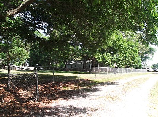 Under the shade of the oaks! 3 bedrooms, 2 baths, great room with gas log fireplace open to kitchen, den, single car garage with 48x15.6 foot workshop, and above ground pool. Lot is 300x206, all fenced and gated. $55,000. Call Kay.