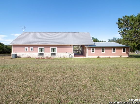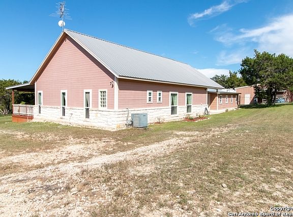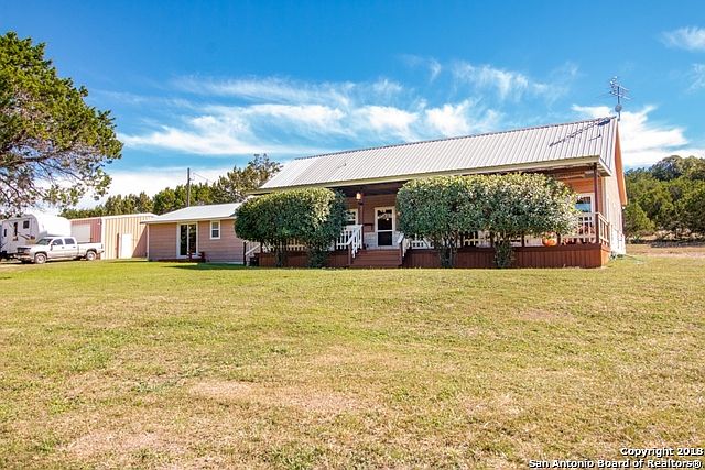 Amazing Custom home nestled in the Heart of the Hill Country on a corner lot(5.13 Acres)w/ attached guest house & shop. 3 Bdrm 2.5 Bath total. Main house features: ceramic tile, berber carpet, new paint, new counters, high ceilings, surround sound, oak cabinets, recessed lighting, great lighting, outdoor kitchen, french doors & mstr bedrm/bath. Bdrm/Bath features custom tile shower & spa bathtub w/ private access to 45X15 covered deck to enjoy nature. Shop is 30X40 w/ 2 roll up doors w/ 220 electric.